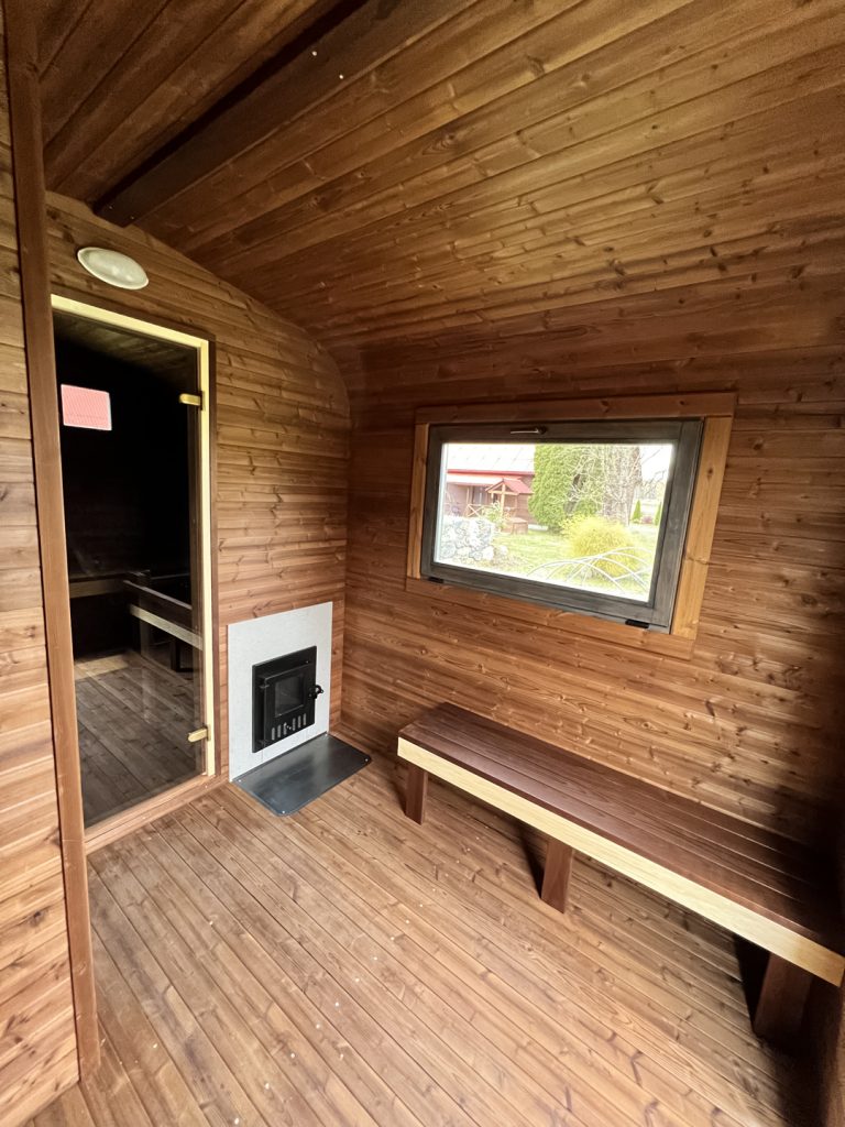 Rectangular thermowood sauna with an antechamber. Length 4.5 m, width 2.3 m. We can manufacture simpler models, or we can manufacture more extensively equipped models – anything is possible with us! Call and ask – we will help you. The sauna can also be purchased on credit.